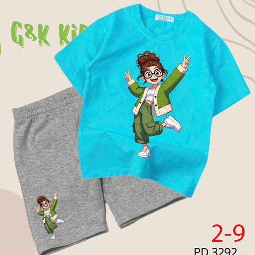 A504056 - Bộ áo phom rộng quần ngố bé gái chất thun coton 4c in cô bé mắt kính tóc xù_Size 2-9