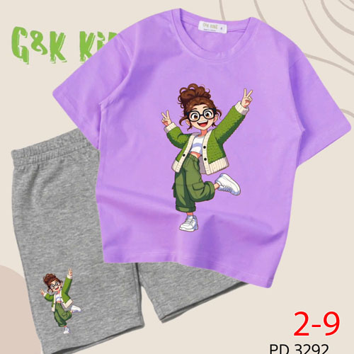 A504058 - Bộ áo phom rộng quần ngố bé gái chất thun coton 4c in cô bé mắt kính tóc xù_Size 2-9