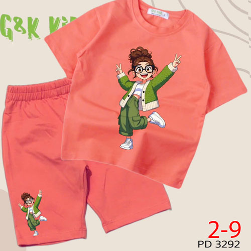 A504065 - Bộ áo phom rộng quần ngố bé gái chất thun coton 4c in cô bé mắt kính tóc xù_Size 2-9