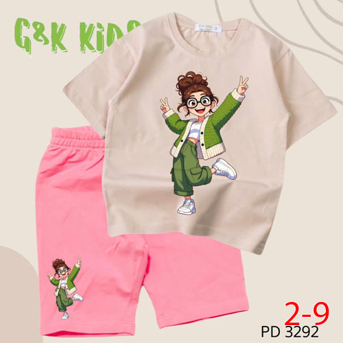 A504066 - Bộ áo phom rộng quần ngố bé gái chất thun coton 4c in cô bé mắt kính tóc xù_Size 2-9