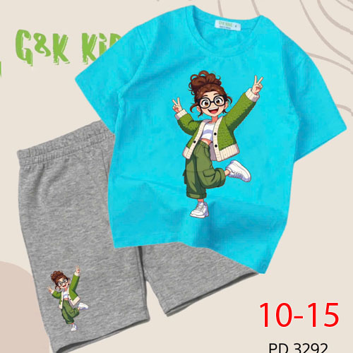 A504097 - Bộ áo phom rộng quần ngố bé gái chất thun coton 4c in cô bé mắt kính tóc xù_Size 10-15