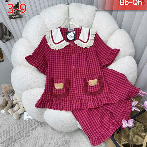 A504300 - Set được may trên chất vải caro coto cổ áo phối ren xinh sắn hình in sắc nét in gấu_Size 3