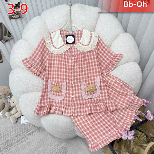 A504302 - Set được may trên chất vải caro coto cổ áo phối ren xinh sắn hình in sắc nét in gấu_Size 3