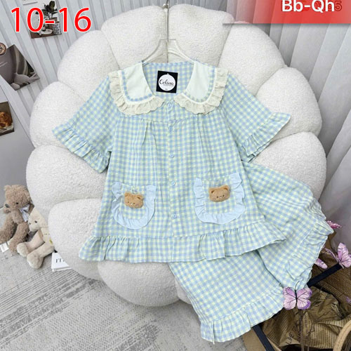 A504304 - Set được may trên chất vải caro coto cổ áo phối ren xinh sắn hình in sắc nét in gấu_Size 1