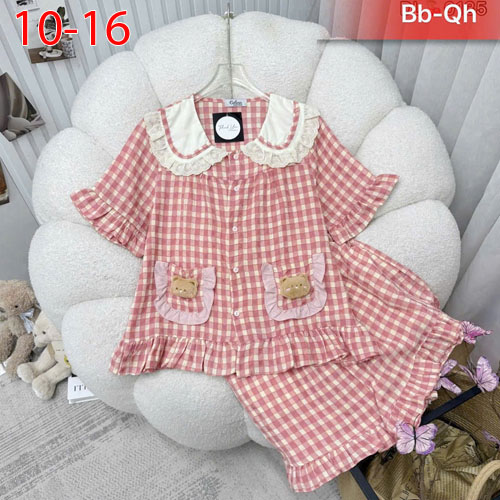 A504305 - Set được may trên chất vải caro coto cổ áo phối ren xinh sắn hình in sắc nét in gấu_Size 1