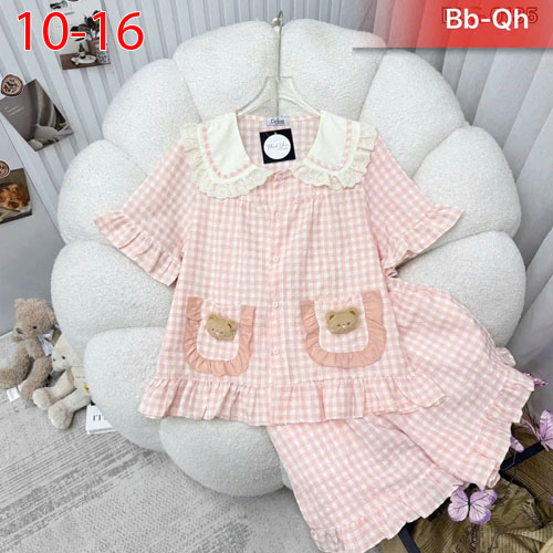 A504306 - Set được may trên chất vải caro coto cổ áo phối ren xinh sắn hình in sắc nét in gấu_Size 1