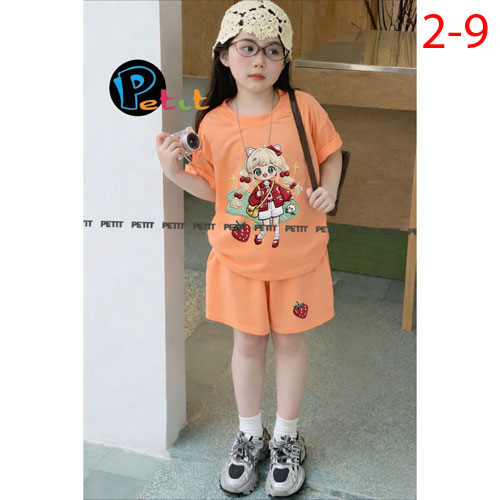 A504313 - Set bé gái áo form rộng thoải mái phối quần đùi năng động thun cotton in thỏ cáo_Size 2-9