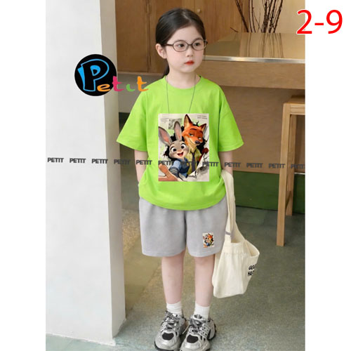 A504316 - Set bé gái áo form rộng thoải mái phối quần đùi năng động thun cotton in thỏ cáo_Size 2-9