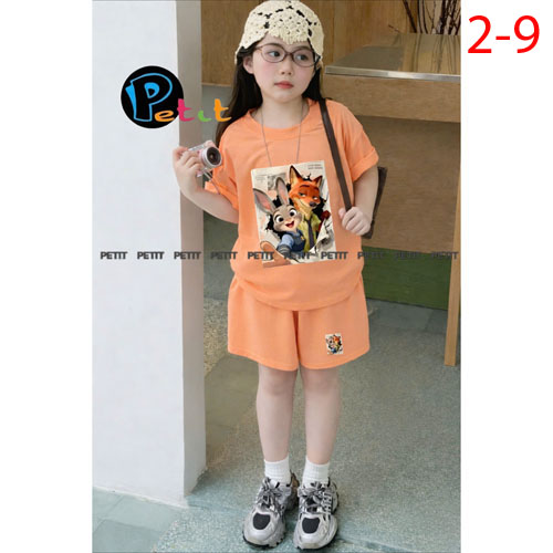 A504317 - Set bé gái áo form rộng thoải mái phối quần đùi năng động thun cotton in thỏ cáo_Size 2-9
