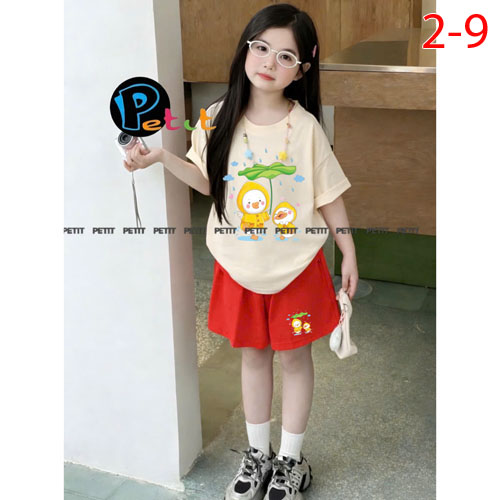 A504321 - Set bé gái áo form rộng thoải mái phối quần đùi năng động thun cotton in thỏ cáo_Size 2-9
