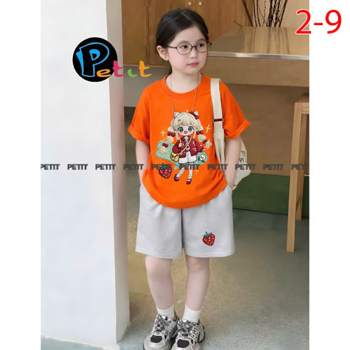 A504322 - Set bé gái áo form rộng thoải mái phối quần đùi năng động thun cotton in thỏ cáo_Size 2-9