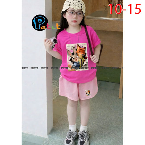 A504342 - Set bé gái áo form rộng thoải mái phối quần đùi năng động thun cotton in thỏ cáo_Size 10-1