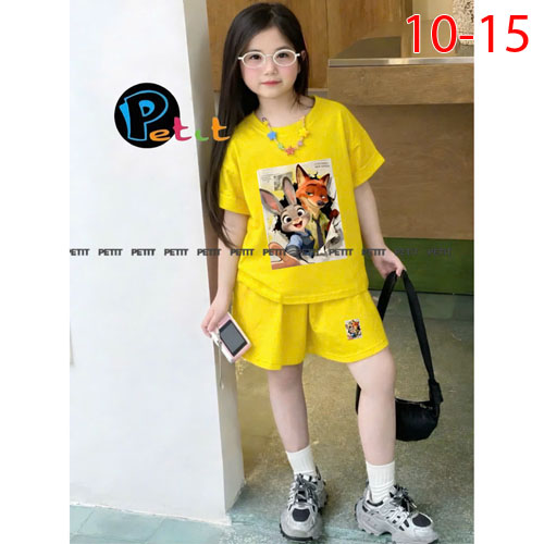 A504347 - Set bé gái áo form rộng thoải mái phối quần đùi năng động thun cotton in thỏ cáo_Size 10-1