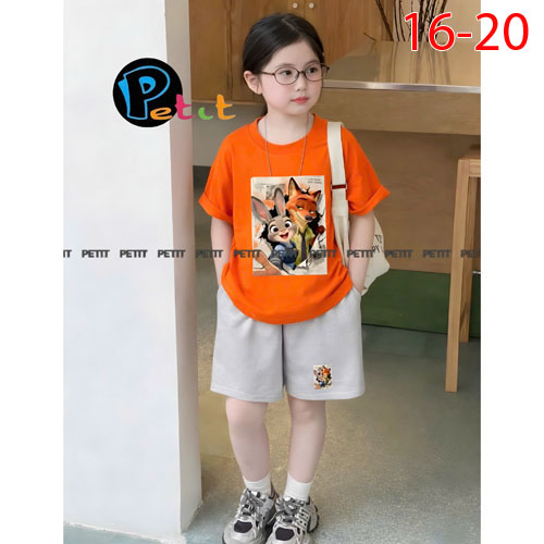 A504363 - Set bé gái áo form rộng thoải mái phối quần đùi năng động thun cotton in thỏ cáo_Size 16-2