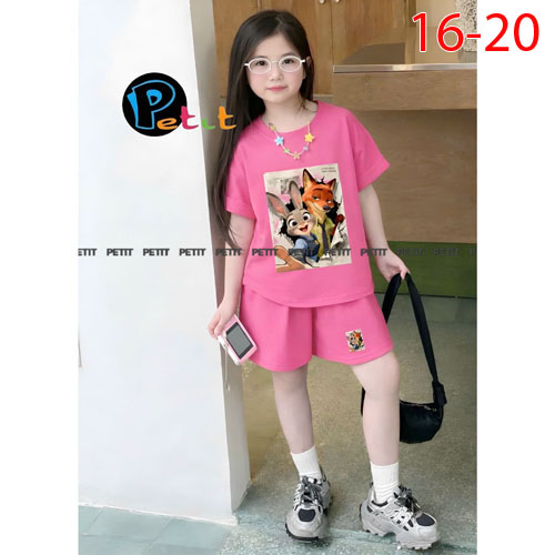 A504375 - Set bé gái áo form rộng thoải mái phối quần đùi năng động thun cotton in thỏ cáo_Size 16-2