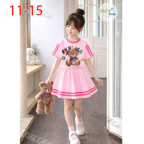 A504434 - Set váy cute với thiết kế chân váy xếp ly chạy dây viền thể thao ép hình gấu siêu hot_Size