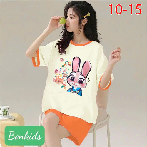 A504486 - Bộ đùi mặc nhà cho mẹ và bé may raplang thun cotton 4c in thỏ_Size 10-15