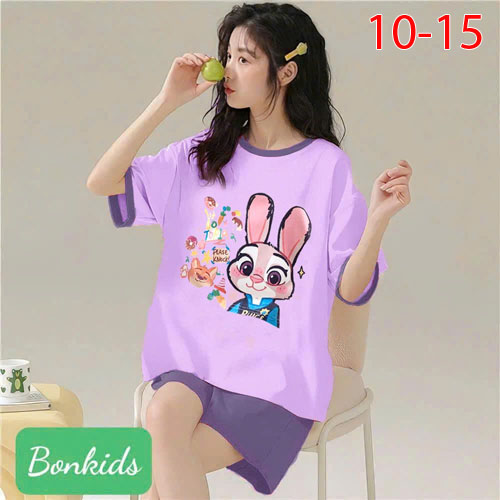 A504487 - Bộ đùi mặc nhà cho mẹ và bé may raplang thun cotton 4c in thỏ_Size 10-15