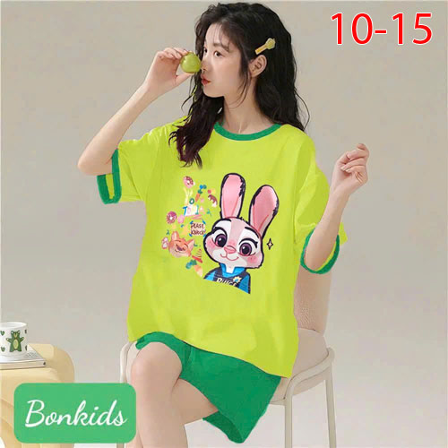 A504491 - Bộ đùi mặc nhà cho mẹ và bé may raplang thun cotton 4c in thỏ_Size 10-15