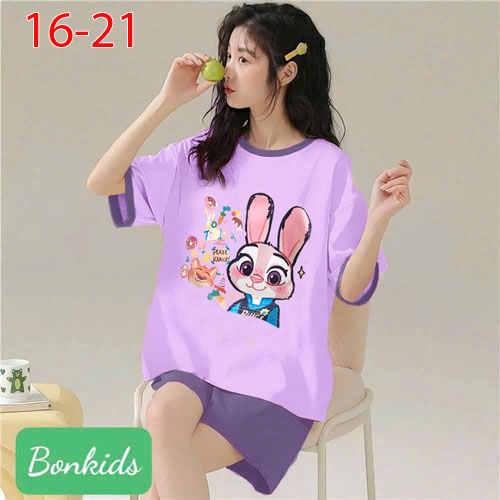 A504494 - Bộ đùi mặc nhà cho mẹ và bé may raplang thun cotton 4c in thỏ_Size 16-21