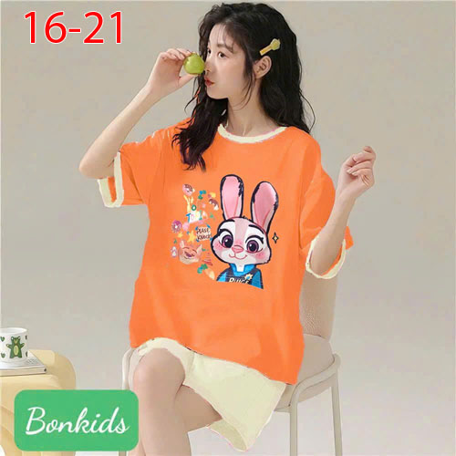 A504496 - Bộ đùi mặc nhà cho mẹ và bé may raplang thun cotton 4c in thỏ_Size 16-21