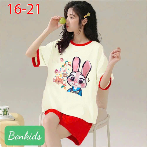 A504499 - Bộ đùi mặc nhà cho mẹ và bé may raplang thun cotton 4c in thỏ_Size 16-21