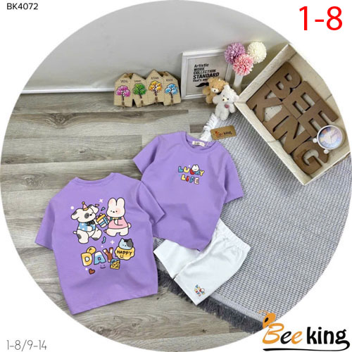 A504585 - Bộ bé gái lửng Lucky thun cotton 4c_Size 1-8