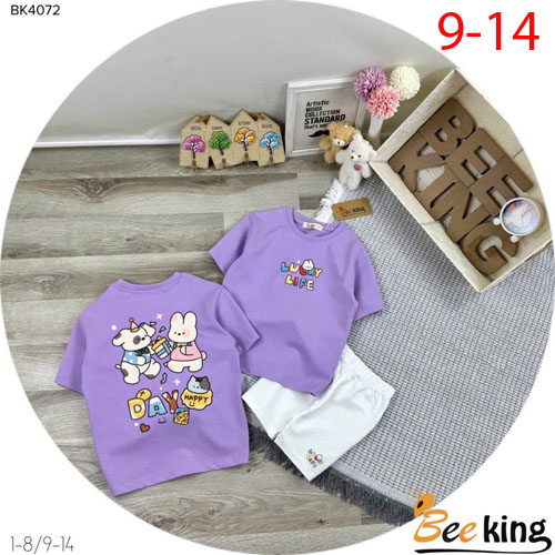 A504603 - Bộ bé gái lửng Lucky thun cotton 4c_Size 9-14