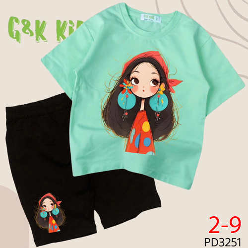 A239784 - Bộ YoYo BG thun cotton 4c Sweet Party áo lai bầu quần đùi_Size 2-9