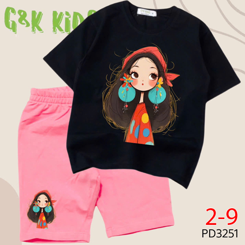 A239784 - Bộ YoYo BG thun cotton 4c Sweet Party áo lai bầu quần đùi_Size 2-9