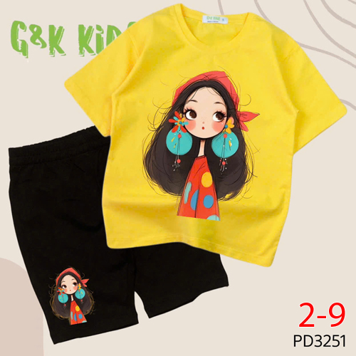 A239784 - Bộ YoYo BG thun cotton 4c Sweet Party áo lai bầu quần đùi_Size 2-9