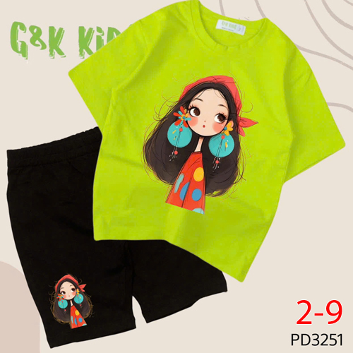 A239784 - Bộ YoYo BG thun cotton 4c Sweet Party áo lai bầu quần đùi_Size 2-9
