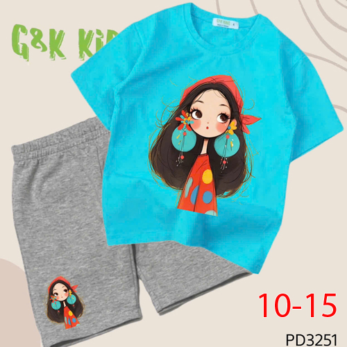 A504764 - Bộ áo phom rộng quần ngố bé gái thun coton 4c in cô bé đội khăn đỏ_Size 10-15