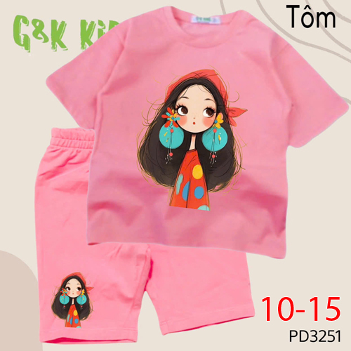 A504768 - Bộ áo phom rộng quần ngố bé gái thun coton 4c in cô bé đội khăn đỏ_Size 10-15