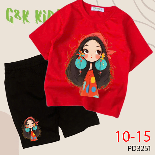 A504770 - Bộ áo phom rộng quần ngố bé gái thun coton 4c in cô bé đội khăn đỏ_Size 10-15