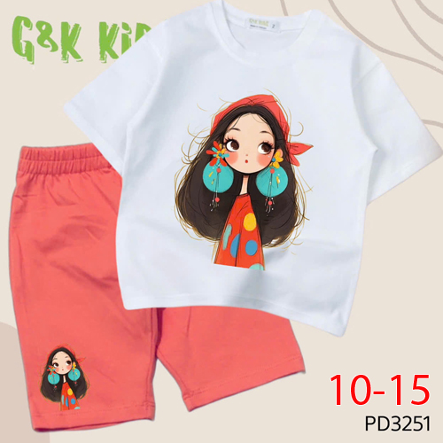 A504773 - Bộ áo phom rộng quần ngố bé gái thun coton 4c in cô bé đội khăn đỏ_Size 10-15