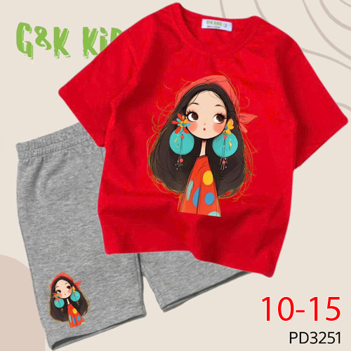 A504775 - Bộ áo phom rộng quần ngố bé gái thun coton 4c in cô bé đội khăn đỏ_Size 10-15