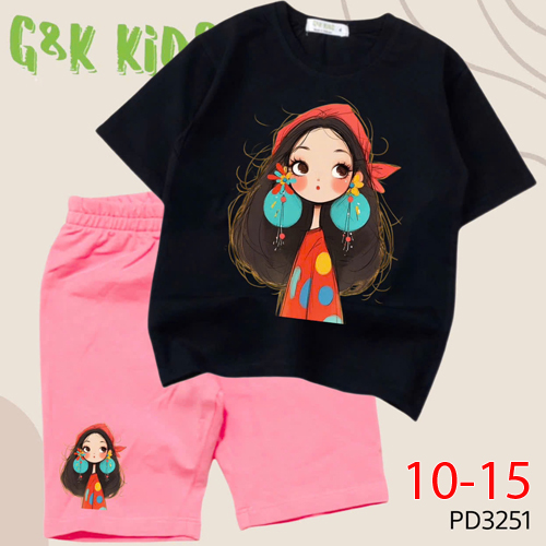 A504776 - Bộ áo phom rộng quần ngố bé gái thun coton 4c in cô bé đội khăn đỏ_Size 10-15