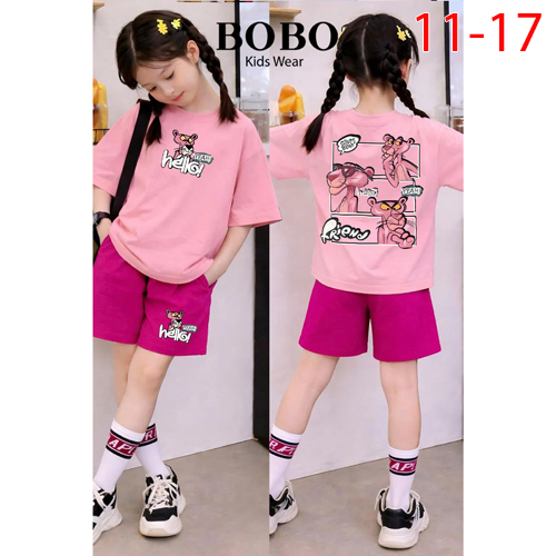 A504814 - Set bé gái chất thun cotton 4c in chú báo hồng_Size 11-17