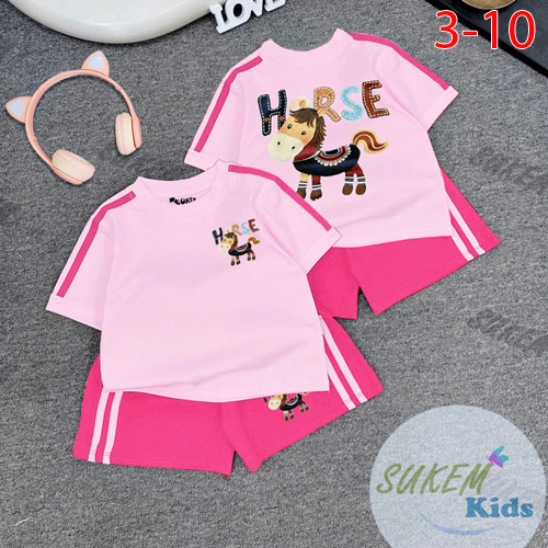 A504834 - Bộ short thể thao siêu cưng cho bé gái thun cotton 4c áo may phối màu chạy dây viền ép con