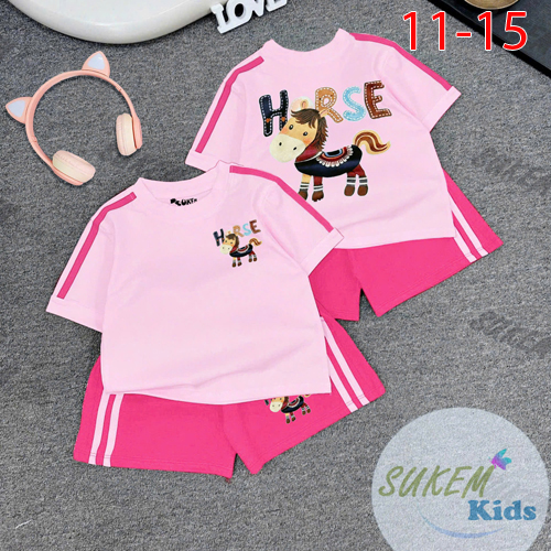 A504835 - Bộ short thể thao siêu cưng cho bé gái thun cotton 4c áo may phối màu chạy dây viền ép con