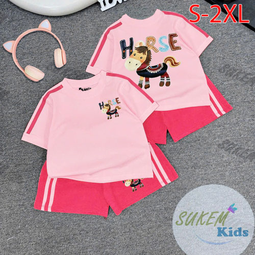 A504845 - Bộ short thể thao siêu cưng cho bé gái thun cotton 4c áo may phối màu chạy dây viền ép con