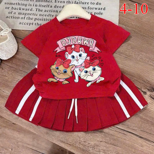 A504982 - Set váy cực xinh thun coton 4c áo in 3 con mèo chân váy xếp ly chạy sọc sườn_Size 4-10