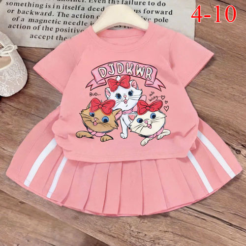 A504984 - Set váy cực xinh thun coton 4c áo in 3 con mèo chân váy xếp ly chạy sọc sườn_Size 4-10