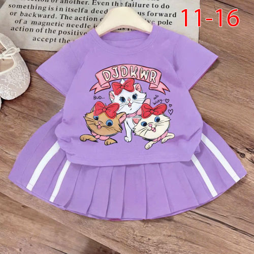 A504986 - Set váy cực xinh thun coton 4c áo in 3 con mèo chân váy xếp ly chạy sọc sườn_Size 11-16