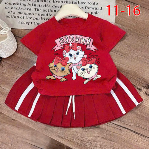 A504987 - Set váy cực xinh thun coton 4c áo in 3 con mèo chân váy xếp ly chạy sọc sườn_Size 11-16