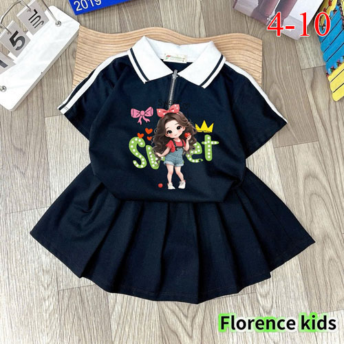 A505004 - Sét váy bé gái siêu xinh thun cotton 4c áo in cô bé SWEET chân váy xếp ly xinh xỉu_Size 4-
