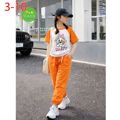 A505153 - Bộ cotton bé gái siêu kute cotton 4 chiều áo phom vừa mix quần ống bo in vịt DAISY_Size 3-