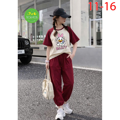 A505160 - Bộ cotton bé gái siêu kute cotton 4 chiều áo phom vừa mix quần ống bo in vịt DAISY_Size 11