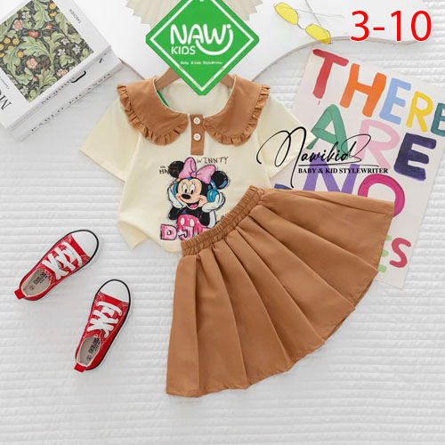 A505279 - Set chân váy Mickey style cute áo thun cotton 4c cổ trụ sen chạy bèo chân váy xếp ly chất